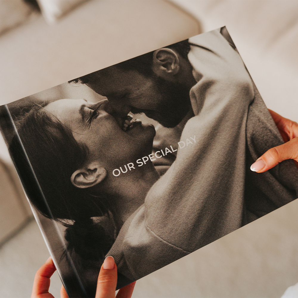 Os Álbuns Analógicos em Linho com janela possuem generosas dimensões de 30x31cm, proporcionando um espaço amplo para organizar e preservar as tuas memórias de forma elegante e sofisticada.