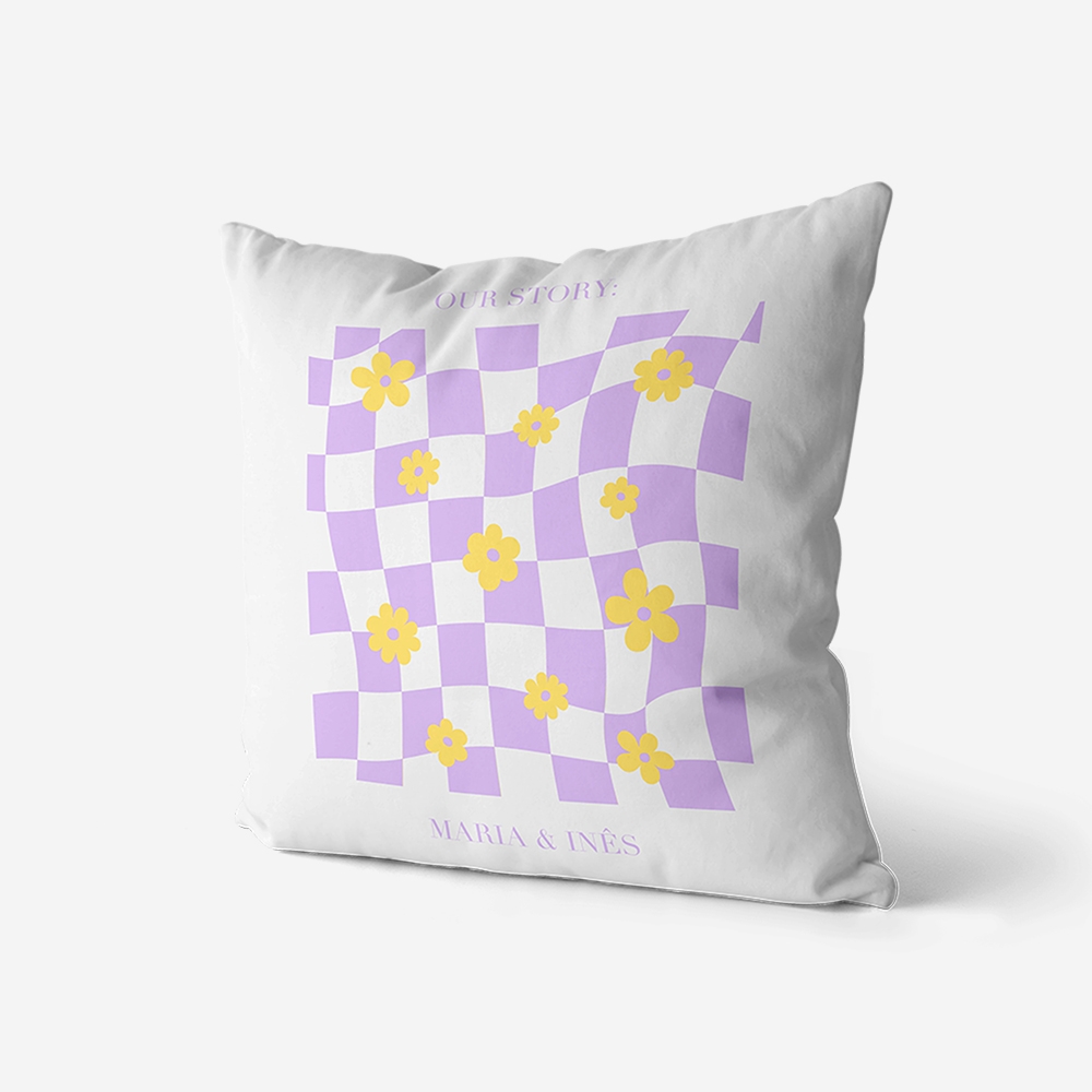 Entre o lilás suave e o amarelo vivo, esta almofada traz a leveza da primavera diretamente para o teu interior. Um jogo de formas geométricas que quebra a monotonia e transforma qualquer canto num cenário digno de uma revista de design.