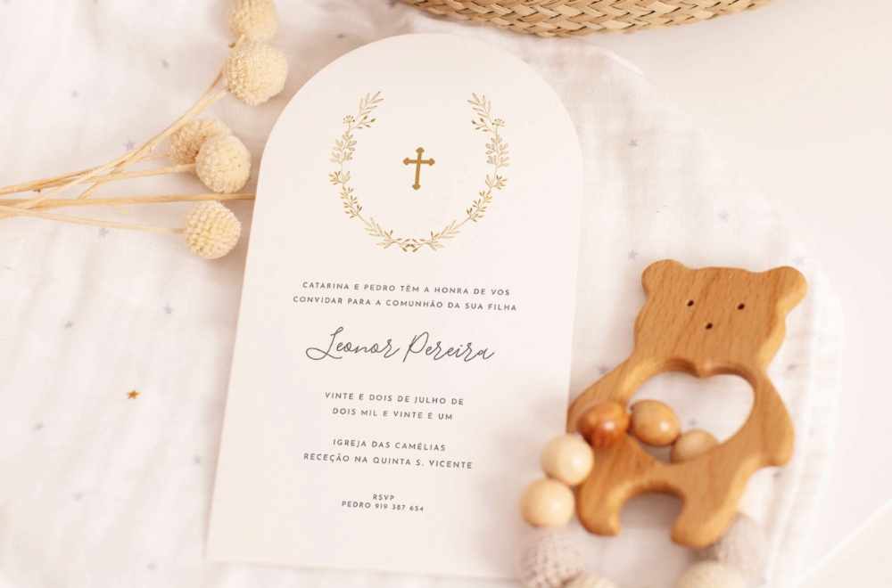 Assim, o convite deve ser capaz de criar boas expectativas nos convidados e de refletir o espírito da ocasião. E por isso, destacamos aqui algumas tendências de convites de comunhão e convites de batizado para 2025.