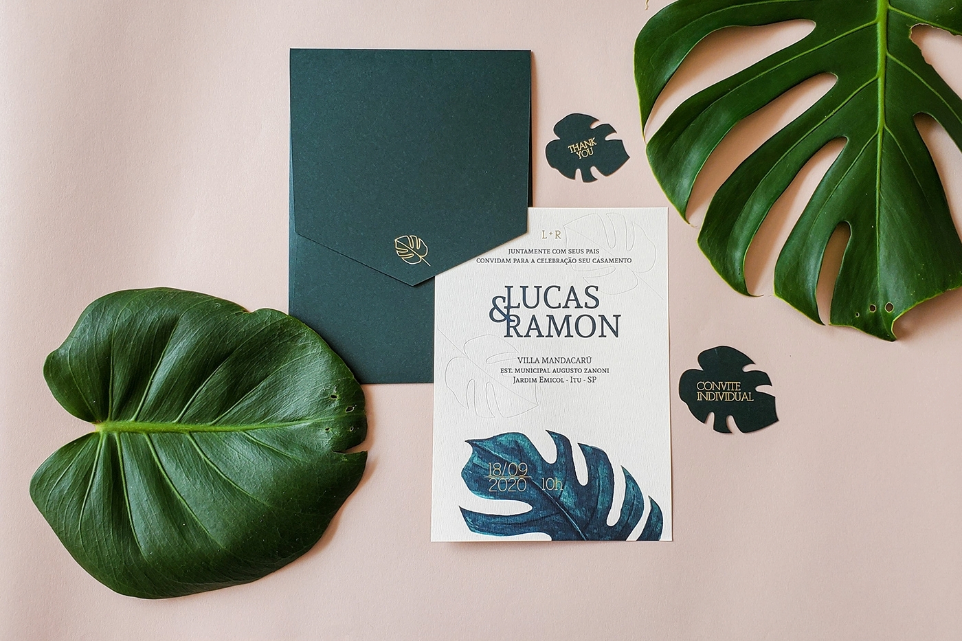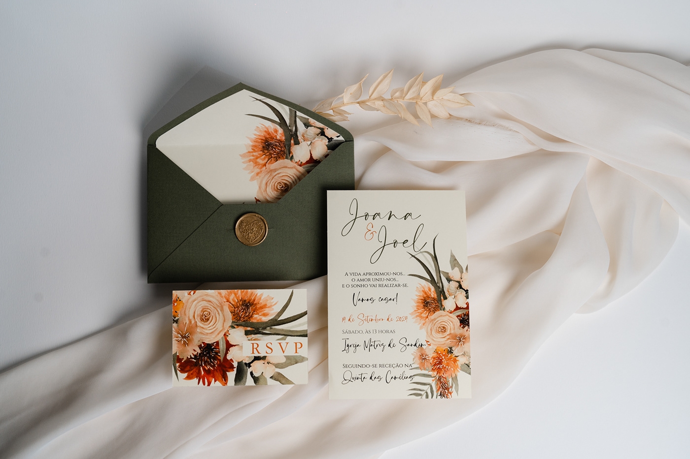 Claro que a cor branca será sempre um clássico para convites de casamento, mas acredita que a tendência do ano de 2025 são cores presentes na natureza nos tons de pêssego, com um toque de luminosidade, e as cores de terra. Ou seja, trata-se de um coral alaranjado rosado.