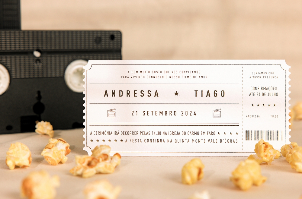 Por exemplo, se estivermos a falar de um casamento na praia, tens de garantir que elementos do oceano e da natureza não podem faltar no teu convite. Ou então, se vocês são um casal de viajantes aventureiros, podem ser criativos ao ponto de transformar o vosso convite de casamento numa espécie de bilhete de viagem, que neste caso, é a viagem do vosso amor.