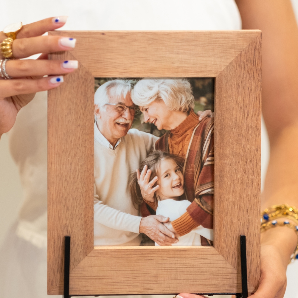 Moldura de alta qualidade, fabricada em madeira, garantindo durabilidade e um acabamento perfeito para destacar as tuas fotos.