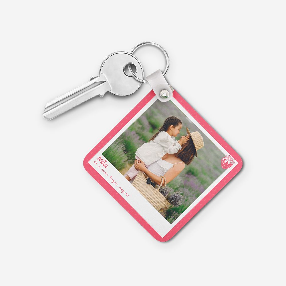Com formato quadrado e personalização total (100%) em ambas as faces, este porta-chaves transforma qualquer foto ou frase num presente romântico e inesquecível.